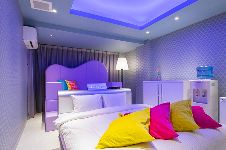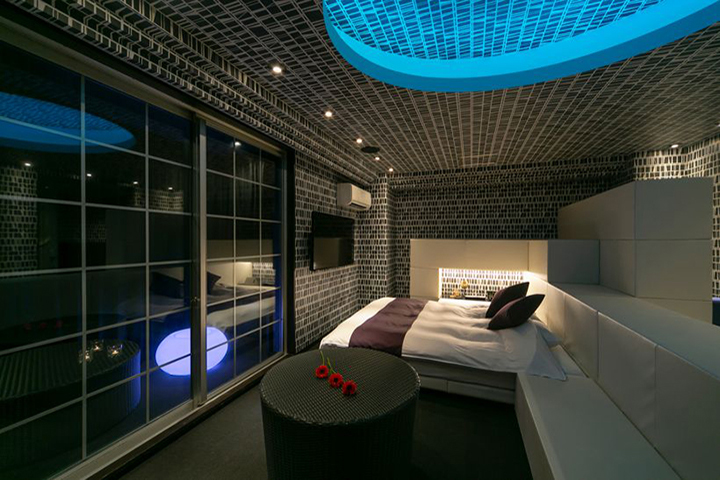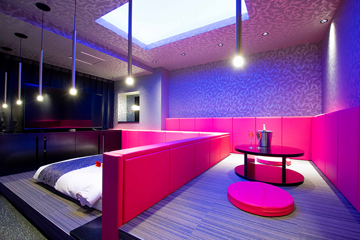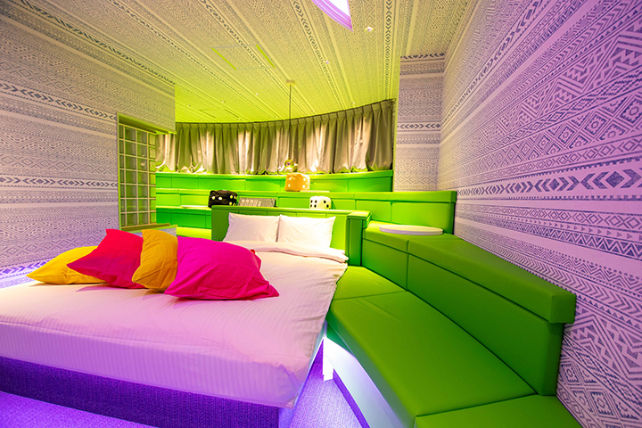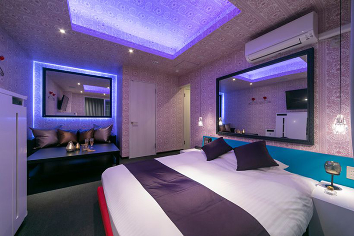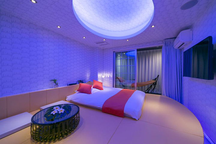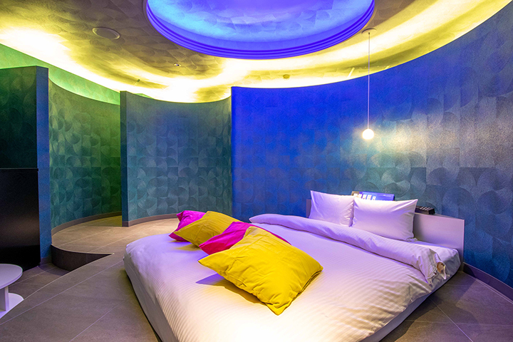 部屋ごとに表情の異なるラグジュアリールームが揃う「ナトリナホテル」。エンターテインメント空間を象徴する客室の創出をコンセプトに、楽しさ・喜び・驚きを提供するとともに、サービスそのものを“体験”として楽しめる設計が随所に施され、女性が喜ぶパウダールームや、性の好奇心をくすぐる立体的なレイアウトが目を引く。