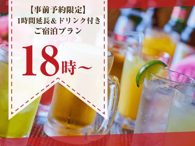 【1時間延長&ドリンク付き】スタンダードご宿泊プラン