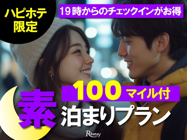★ハピホテ限定★【事前決済】ボーナスマイル100マイル付!!19時INでお得♪素泊まりプラン